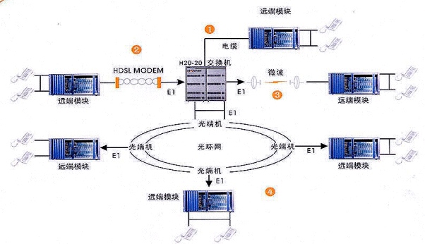 體系特點(diǎn):利用廉價(jià)的HDSL設(shè)備,可以直接使用銅線(xiàn)長(zhǎng)距離傳輸E1信號(hào),可以實(shí)現(xiàn)1:64倍的擴(kuò)容、線(xiàn)纜改造、提高線(xiàn)路利用率,并能夠簡(jiǎn)化維護(hù)、方便管理。