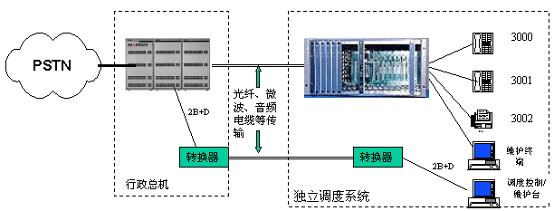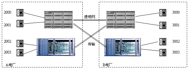 適用范圍:這種應(yīng)用適用于對(duì)電話(huà)系統(tǒng)安全性要求嚴(yán)格的場(chǎng)合,如電力系統(tǒng)行政交換機(jī)與調(diào)度交換機(jī)就可以以上述方式實(shí)現(xiàn)備份,從而實(shí)現(xiàn)行政或調(diào)度交換機(jī)某一臺(tái)不能工作時(shí),依然可以通過(guò)備份系統(tǒng)打電話(huà)。