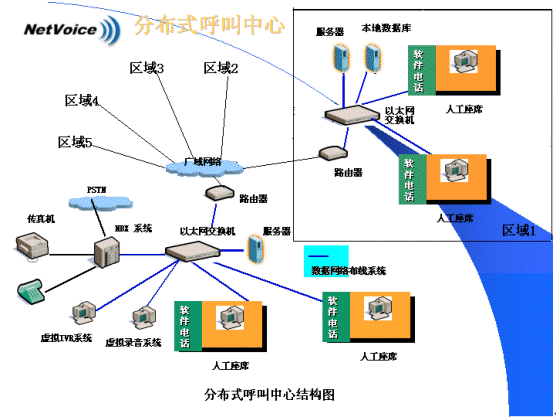 由于代理技能差異、語言差異、呼叫量的差異,以及客戶中心客戶所在地的變化及每個客戶對各自所擁有的用戶資料的保密性需求,分布式呼叫中心往往更適合各類企業(yè)的實際。分布式呼叫中心的建立,意味著需要在多個分中心之間進行統(tǒng)一的呼叫控制及語音與同步數(shù)據(jù)轉移。NBX網(wǎng)絡交換機的引入,兩網(wǎng)合一的特性使分布式呼叫中心的建立成為了一件非常容易的事情。呼叫中心可以擴展到多個位于不同地域的局域網(wǎng)上,通過路由選擇可以自動地把呼叫(
