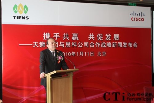 CTI論壇(ctiforum)1月12日消息(記者 張塵):2010年1月11日,北京——“攜手共贏 共促發(fā)展——天獅集團(tuán)與思科公司戰(zhàn)略項(xiàng)目新聞發(fā)布會(huì)”在北京召開,雙方共同宣布,天獅集團(tuán)國(guó)際健康產(chǎn)業(yè)園網(wǎng)絡(luò)平臺(tái)成功啟用,并正式達(dá)成合作戰(zhàn)略。天獅集團(tuán)董事長(zhǎng)兼總裁李金元先生與思科全球副總裁、思科中國(guó)副董事長(zhǎng)兼總裁林正剛先生出席新聞發(fā)布會(huì),并進(jìn)行簽約儀式。通過本次強(qiáng)強(qiáng)聯(lián)合,思科面向服務(wù)的網(wǎng)絡(luò)架構(gòu)(SONA)全面部署于天獅集團(tuán)國(guó)際健康產(chǎn)業(yè)園,為天獅集團(tuán)業(yè)務(wù)的穩(wěn)定持續(xù)發(fā)展以及信息化水平的進(jìn)一步提升提供了可靠保證,同時(shí)也為雙方未來更深層次的合作打下了堅(jiān)實(shí)的基礎(chǔ)。