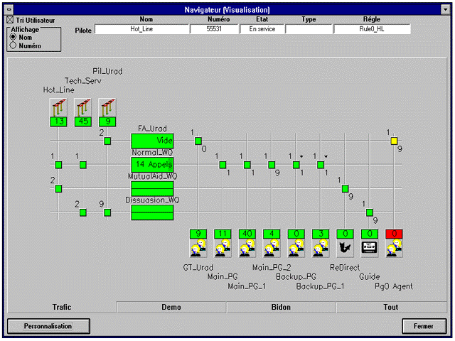 A4400 CCS 呼叫中心監(jiān)管系統是A4400 CCD 的完美配套設備。此監(jiān)管系統組件提供最新實時監(jiān)控功能。經理和主管不僅能很好協調呼叫處理過程,而且也能觀察服務水準、話務量情況等,并能在現場采取相應的措施。