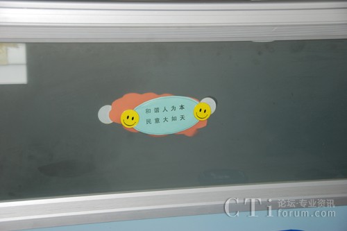 圖:座席工位前的小笑臉:提醒每一個(gè)座席員“和諧人為本 民意大如天”