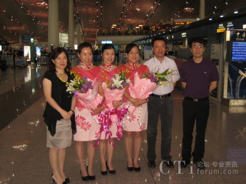 信息導(dǎo)航業(yè)務(wù)中心總經(jīng)理?xiàng)钣、副總?jīng)理魏婕等領(lǐng)導(dǎo)前往機(jī)場(chǎng)送行,中心副總經(jīng)理郝孟堯帶隊(duì)前往韓國(guó)。中心領(lǐng)導(dǎo)向三位114話(huà)務(wù)員送上了獻(xiàn)花與祝福,希望她們珍惜此次走出國(guó)門(mén)為世博會(huì)服務(wù)的難得機(jī)會(huì),展現(xiàn)114的風(fēng)采,將北京聯(lián)通114最動(dòng)聽(tīng)的聲音、最美麗的微笑、最優(yōu)質(zhì)的服務(wù)向世界呈現(xiàn)。三位114話(huà)務(wù)員表示,將用純正、專(zhuān)業(yè)的中文綜合信息咨詢(xún)服務(wù),讓世界感受到聯(lián)通114的熱情與微笑。