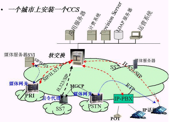 下一代電信網(wǎng)絡(luò)(NGN)體系結(jié)構(gòu)為新興的電信運(yùn)營商真正介入端到端的話音業(yè)務(wù)提供了契機(jī)。目前,銅纜資源為中國電信所壟斷,許多新興的電信運(yùn)營和寬帶運(yùn)營商正為如何真正介入語音電話而煩惱。但是隨著技術(shù)的進(jìn)步,語音編解碼的出現(xiàn),在IP網(wǎng)絡(luò)上傳送語音的技術(shù)已經(jīng)較為成熟。同時(shí)在下一代電信網(wǎng)絡(luò)體系結(jié)構(gòu)中解決了phone to IP-phone,IP-phone to phone 的地址映射問題,為新電信運(yùn)營商介入語音業(yè)務(wù)提供了技術(shù)手段。同時(shí),各個(gè)地方寬帶城域網(wǎng)、接入網(wǎng)的建設(shè),特別是寬帶接入網(wǎng)建設(shè)為基本為都提供了用戶提供10M速率的接入。而且寬帶接入網(wǎng)建設(shè)上的競爭日益激烈,中國電信、長城寬帶、聯(lián)通、網(wǎng)通都有一定的寬帶接入用戶的份額,為新興的電信運(yùn)營商介入語音業(yè)務(wù)提供了物理手段。隨著信息產(chǎn)業(yè)部對各電信運(yùn)營商互聯(lián)互通要求的加強(qiáng),為新興的電信運(yùn)營商介入語音業(yè)務(wù)提供了較好的可運(yùn)營環(huán)境。雖然目前在IP網(wǎng)絡(luò)上沒有提供Qos保證的機(jī)制,但IP骨干和接入網(wǎng)為用戶提供充足的帶寬同樣能做到較好的話音質(zhì)量。IP電話的出現(xiàn)也為有線網(wǎng)路介入話音業(yè)務(wù)提供了技術(shù)手段。同時(shí)目前在建成的寬帶接入網(wǎng)上應(yīng)用的只有上網(wǎng)業(yè)務(wù),如何增加寬帶接入的應(yīng)用,提高寬帶接入網(wǎng)的收入,是寬帶運(yùn)營商最關(guān)心的事情。我們能夠提供一整套的解決方案利用寬帶接入(五類線)為新興的寬帶運(yùn)營提供市話、長話業(yè)務(wù)。