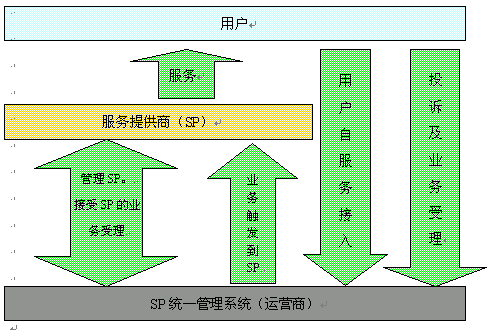 SP統(tǒng)一管理系統(tǒng)層次清晰,遵循系統(tǒng)設計思路,以實現(xiàn)SP統(tǒng)一接入、統(tǒng)一管理為最終建設目標。在以下接入層的功能介紹部份,我們了解到如何將SP納入到運營商的網(wǎng)維體系的技術實現(xiàn)方案,適應于將社會上所有SP接入平臺接受管理;運營管理層為各類SP提供統(tǒng)一的后臺管理功能;自服務層其實也是運營管理層中的內容,負責提供給運營商、SP和用戶使用及管理業(yè)務的接口界面,本文中我們獨立在一個功能層面加以介紹,為的是有針對性地對系統(tǒng)前后臺管理功能加以介紹。