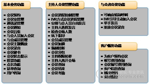 所謂“交互式電話會(huì)議”是指由分布在不同地方的與會(huì)者,通過(guò)固定電話或移動(dòng)電話或數(shù)字電話終端等通信終端,采用約定的方式(呼入方式或呼出方式)進(jìn)入電話會(huì)議狀態(tài),主持人和與會(huì)者彼此能自由交談,自由發(fā)言的業(yè)務(wù)。新太交互式電話會(huì)議服務(wù)系統(tǒng)對(duì)“交互”二字的體現(xiàn)主要表現(xiàn)在語(yǔ)音的交互及控制的交互兩方面。語(yǔ)音的交互是指會(huì)議主持人以及與會(huì)者不僅可以聽(tīng)到會(huì)議現(xiàn)場(chǎng)別人的發(fā)言,還可以自由地發(fā)表自己的見(jiàn)解;控制的交互性是指會(huì)議主持人具有對(duì)整個(gè)會(huì)議的控制權(quán),有權(quán)加入新與會(huì)者或強(qiáng)行拆除某與會(huì)者,有權(quán)決定是否對(duì)會(huì)場(chǎng)錄音等。此外,在交互式電話會(huì)議的定義上本系統(tǒng)還延伸出多種會(huì)議模式,如允許申請(qǐng)發(fā)言的廣播式會(huì)議、點(diǎn)名發(fā)言的廣播式電話會(huì)議、分組討論會(huì)議等。