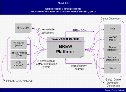 當(dāng)然,企業(yè)對(duì)未來(lái)的把握也往往和自己對(duì)這個(gè)行業(yè)的熟悉程度分不開(kāi)的,所以微軟今天的策略大都帶有強(qiáng)烈的IT和互聯(lián)網(wǎng)的味道。而移動(dòng)市場(chǎng)當(dāng)中的新貴高通公司,就想當(dāng)年的微軟一樣,偶然性地掌握了CDMA的核心技術(shù),同時(shí)由于移動(dòng)通信在全球的興起,成了移動(dòng)通信價(jià)值鏈中的重要環(huán)節(jié)之一。但是,由于所有的競(jìng)爭(zhēng)廠家都希望自己擁有核心技術(shù),技術(shù)上略落后,但更開(kāi)放的GSM得到了更多市場(chǎng)的青睞。為了保持自己的地位,高通采取了與微軟相似的地位,拋出了名為BREW的移動(dòng)應(yīng)用平臺(tái)。與微軟在寬帶和廣電的策略相同,高通在移動(dòng)通信領(lǐng)域提供從技術(shù)、服務(wù)到外包運(yùn)營(yíng)等全套解決方案。在移動(dòng)游戲領(lǐng)域,高通為美國(guó)第一大無(wú)線運(yùn)營(yíng)商Verizon搭建了基于BREW的游戲業(yè)務(wù)平臺(tái),同時(shí)負(fù)責(zé)這一平臺(tái)的運(yùn)圍和與游戲提供商的合作及管理、促銷(xiāo)等工作。與Verizon的合作是獨(dú)家的,建立在利潤(rùn)分成的基礎(chǔ)上,到現(xiàn)在為止,這種模式是移動(dòng)游戲領(lǐng)域最成功的合作之一?梢哉f(shuō),高通把自己變成了半個(gè)運(yùn)營(yíng)商,同時(shí)由于擁有客戶(hù)資源和合作模式提供,高通的地位有望超過(guò)Verizon。