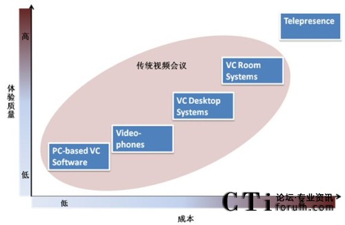 & Sullivan 咨詢顧問楊梅從體驗質(zhì)量及成本兩個緯度對目前市場上的視頻會議系統(tǒng)產(chǎn)品進(jìn)行了深入比較,發(fā)現(xiàn)網(wǎng)真在體驗質(zhì)量上要明顯高于其他產(chǎn)品,然而其在部署成本上同樣要高于其它產(chǎn)品,這也是目前網(wǎng)真產(chǎn)品推廣中遇到的較大問題。如何能使客戶真正了解建立虛擬互動社區(qū)的需求,如何從貴族化走向平民化成為其蓬勃發(fā)展的關(guān)鍵。