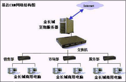 易達(dá)CRM應(yīng)用于小型網(wǎng)絡(luò)環(huán)境(或單機(jī)應(yīng)用),對于中小型企業(yè)只需建立PC級局域網(wǎng)絡(luò)環(huán)境即可,同時(shí)可以通過服務(wù)器聯(lián)入INTERNET,便于異地業(yè)務(wù)人員的數(shù)據(jù)錄入和EMAIL數(shù)據(jù)傳送。(在此易達(dá)CRM與相關(guān)品牌的PC服務(wù)器、PC商用機(jī)建立戰(zhàn)略合作關(guān)系,以較優(yōu)惠的價(jià)格向中小型企業(yè)提供性價(jià)比很高的全面解決方案包,這是對中小型企業(yè)用戶、硬件廠商、易達(dá)軟件三方均有益的解決方案)。