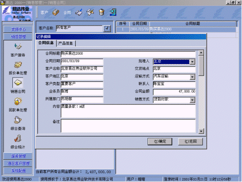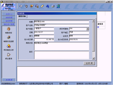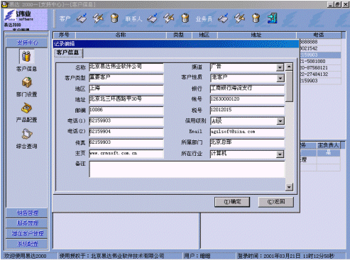 附:有關(guān)易達(dá) 2000 CRM軟件界面: