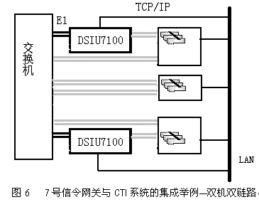 。。DSIU7100單鏈路網(wǎng)關(guān)能夠處理一條7號信令鏈路,可以支持4096話路,為通信網(wǎng)上的多種增值服務(wù)系統(tǒng)提供七號信令網(wǎng)絡(luò)平臺,使其具有七號信令接口。其突出特點是――兩個DSIU7100可以成對配置,共用同一個信令點碼。這種配置是完全的冗余方案。正常操作時,信令是由兩個DSIU7100負(fù)荷分擔(dān)的,一旦某個DSIU7100發(fā)生故障,則故障網(wǎng)關(guān)上的業(yè)務(wù)會由另一個DSIU7100來接管。