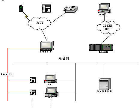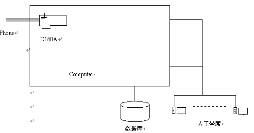 整個(gè)系統(tǒng)主要由CTI服務(wù)器(語(yǔ)音處理服務(wù)器)構(gòu)成,結(jié)構(gòu)圖如下;跂|進(jìn)D160A的CTI服務(wù)器方便地實(shí)現(xiàn)了 呼叫排隊(duì): 外線呼入時(shí),將呼叫自動(dòng)分配到空閑座席; 座席全忙時(shí),將呼叫進(jìn)行排隊(duì),待座席空閑時(shí),自動(dòng)轉(zhuǎn)接。 自動(dòng)語(yǔ)音提示:外線呼入時(shí),自動(dòng)播放提示語(yǔ)音"您好,歡迎使用XX 系統(tǒng)、自動(dòng)服務(wù)請(qǐng)按0,人工服務(wù)請(qǐng)按1;如果選擇人工服務(wù),座席臺(tái)全忙時(shí),放提示音"服務(wù)臺(tái)正忙,請(qǐng)稍候"。自動(dòng)服務(wù):播放語(yǔ)音提示,指導(dǎo)客戶(hù)操作。顧客可以利用音頻按鍵輸入信息;根據(jù)客戶(hù)的音頻按鍵播放相應(yīng)的信息,或者進(jìn)入下一級(jí)菜單。坐席服務(wù):外線撥入系統(tǒng)后,如果選擇人工服務(wù),系統(tǒng)將來(lái)話與臺(tái)內(nèi)座席接通。