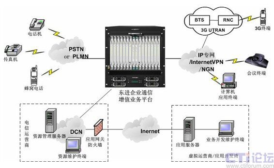 東進技術企業(yè)電信增值服務平臺的網(wǎng)絡結構圖如下圖所示: