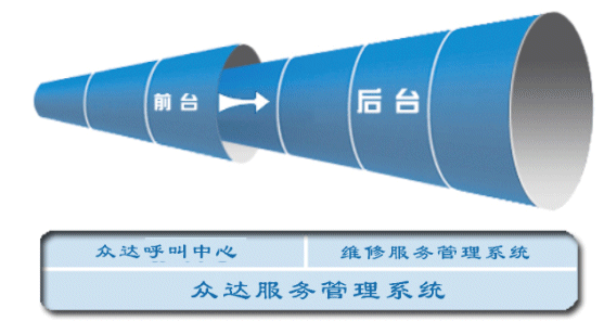 眾達客服管理系統(tǒng)分為呼叫中心系統(tǒng)和維修服務管理系統(tǒng)兩部分,呼叫中心系統(tǒng)主要負責電話接入,對話務員接聽電話的全過程進行管理、記錄、統(tǒng)計以及實現(xiàn)自動語音應答、自動呼叫分配等智能功能;維修服務管理系統(tǒng)(B/S結構)主要負責記錄通過"呼叫中心"得到的客戶資料,跟蹤處理維修服務流程,記錄和統(tǒng)計服務數(shù)據(jù)。