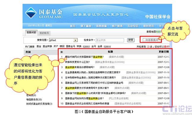 國泰基金成立于1998年3月5日,是國內(nèi)按照規(guī)范化要求成立的首批基金管理公司之一,注冊資本為1.1億,總部位于上海。贏得了包括封閉式和開放式基金近150萬持有人的信任,成為了一家市場信譽良好、具有較高知名度的專業(yè)證券投資管理公司,得到社會中介機構(gòu)的諸多肯定。日前,該公司運用53IQ客戶自助服務(wù)系統(tǒng),進一步拓展客戶服務(wù)方式,實現(xiàn)了先進的客戶關(guān)系管理。