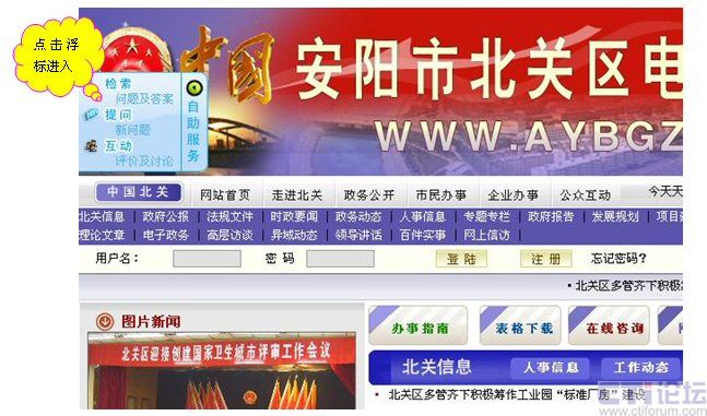 用戶(hù)只要登錄中國(guó)北關(guān)區(qū)人民政府門(mén)戶(hù)外網(wǎng)站,能看到一個(gè)左漂浮的自助服務(wù)(如圖1),點(diǎn)擊該浮動(dòng),就能進(jìn)到北關(guān)區(qū)人民政府的自助服務(wù)平臺(tái)(如圖2)。