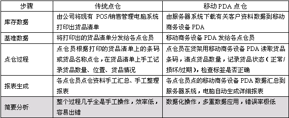 以下對傳統(tǒng)盤點和移動PDA盤點的比較: