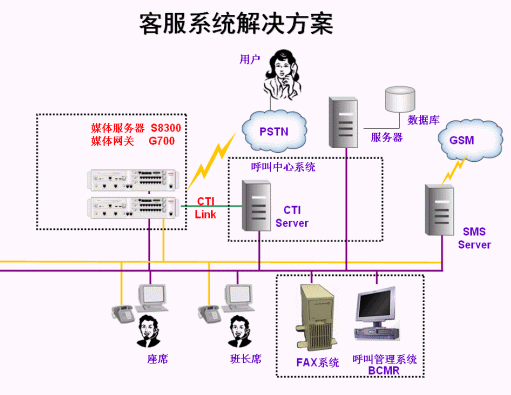 - 采用AVAYA S8300交換機做為客戶服務(wù)中心的核心電話接入平臺,系統(tǒng)中配置CTI接口模塊和內(nèi)置的自動呼叫分配軟件包。