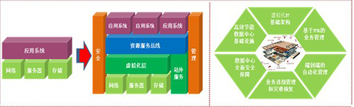 企業(yè)的發(fā)展和業(yè)務(wù)的創(chuàng)新越來(lái)越離不開(kāi)IT技術(shù)的應(yīng)用,傳統(tǒng)的以項(xiàng)目為建設(shè)單元的數(shù)據(jù)中心造成了煙囪式的建設(shè)、分布式的開(kāi)發(fā)、分離式的運(yùn)維,使眾多企業(yè)的 IT 形成了復(fù)雜的、孤立的架構(gòu),信息孤島隨處可見(jiàn),無(wú)法提供靈活、安全和易于擴(kuò)展的應(yīng)用環(huán)境,從多方面影響了業(yè)務(wù)運(yùn)營(yíng)的效果。隨著商業(yè)模式的不斷創(chuàng)新、IT技術(shù)的不斷發(fā)展,業(yè)務(wù)與IT日益密切,傳統(tǒng)的數(shù)據(jù)中心建設(shè)已經(jīng)無(wú)法滿足未來(lái)業(yè)務(wù)發(fā)展的需要,難于部署新的應(yīng)用與服務(wù),設(shè)備利用率低下,業(yè)務(wù)彈性較難,無(wú)法保證系統(tǒng)和應(yīng)用的可用性和可靠性,同時(shí)不斷上升的能源成本和能源需求、機(jī)房空間需求阻礙了業(yè)務(wù)的發(fā)展。