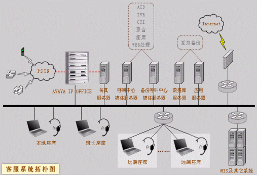 利用AVAYA IP OFFICE和Intel的HMP配合構建的呼叫中心,是新一代小型呼叫中心的范例。利用IP OFFIC的高穩(wěn)定性和分布能力,HMP提供的基于IP媒體的豐富性實現(xiàn)了方案要求的高度融合性分布式和可擴展性要求。