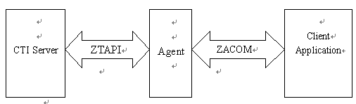 通常呼叫中心的座席軟件都需要用戶定制,以便在標準的座席功能上加入業(yè)務(wù)處理功能,并且要求能與業(yè)務(wù)系統(tǒng)交換數(shù)據(jù)。用戶可以利用ZTAPI接口直接定制自己的座席軟件,也可以使用Agent軟件自帶的COM開發(fā)接口來實現(xiàn)同樣的功能。后者是一種更便捷的機制,因為可以直接使用ZingServ®標準的座席軟件--Agent的座席功能,用戶可以把更多的精力投入到業(yè)務(wù)處理功能,使用ZACOM要求使用時需運行Agent軟件。ZACOM開發(fā)結(jié)構(gòu)示意圖如下: