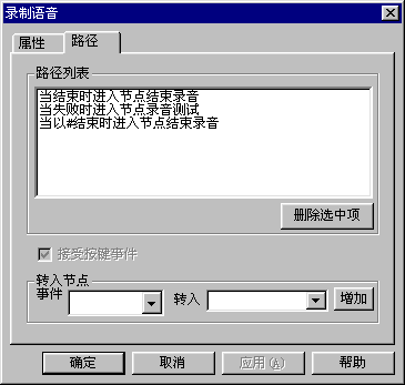 ZingServ IVR的播放語(yǔ)音模塊中,提供了現(xiàn)場(chǎng)錄放語(yǔ)音提示文件的界面,你可以通過(guò)電話或電腦聲卡來(lái)錄制語(yǔ)音提示文件。