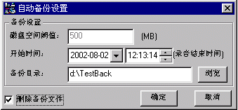 自動備份由事先設定的磁盤空間報警閾值觸發(fā),它會發(fā)出信息提示或聲音提示,然后將用戶事先確定的時間范圍內(nèi)的錄音文件全部備份到客戶機硬盤、磁盤陣列或其他記錄介質(zhì)上,并且可以自動刪除系統(tǒng)硬盤上已經(jīng)被備份出來的文件。