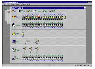 VoiceMaster的Monitor Workstation是一個為提供即時系統(tǒng)功能和動態(tài)信息而設(shè)計的通用工具程序。監(jiān)控工作站(Monitor Workstation)顯示系統(tǒng)組件和系統(tǒng)操作特性、通訊線路、主控計算機的連接情況、不間斷電源(UPS)及磁盤容量等各自實時狀態(tài)的圖形簡報。當有問題或出錯時產(chǎn)生報警及警告信息來通知系統(tǒng)管理員。