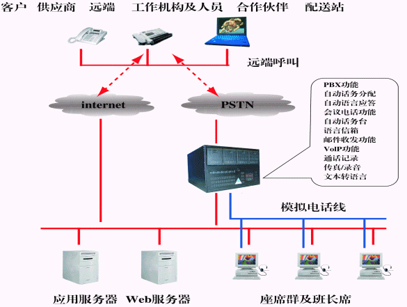 現(xiàn)代物流企業(yè)與以往的物流企業(yè)不同,不僅僅局限于物流中的某一個(gè)環(huán)節(jié),而是普遍采用了信息化管理技術(shù),如ERP、物流管理(LM)、SCM等應(yīng)用系統(tǒng),并通過Internet將遍布在各地的物流中心與客戶連接起來,形成一個(gè)高效率的物流配送網(wǎng)絡(luò)。建立在奧迪堅(jiān)基于IP的分布式呼叫中心平臺(tái)上的客戶服務(wù)系統(tǒng),以IP技術(shù)為核心在網(wǎng)絡(luò)上構(gòu)建一個(gè)語音和數(shù)據(jù)的統(tǒng)一平臺(tái),在一臺(tái)服務(wù)器上融合了CTI、PBX、ACD、VoIP、Voice、Mail,Recording,Call Routing等技術(shù)和應(yīng)用,實(shí)現(xiàn)網(wǎng)絡(luò)時(shí)代高效通訊所需所有常用功能。同時(shí)憑借其高度的靈活性和柔韌性,可以無縫地嵌入物流配送網(wǎng)絡(luò)的各個(gè)環(huán)節(jié),成為真正滿足現(xiàn)代物流企業(yè)需要的綜合性服務(wù)和營運(yùn)中心,無論在世界的哪個(gè)角落,遠(yuǎn)程IP座席和分布的異地機(jī)構(gòu)都可以共享所有資源(語音、數(shù)據(jù)、座席),真正實(shí)現(xiàn)一個(gè)高效的、信息共享的分布式呼叫中心系統(tǒng)。