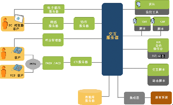 交互(輔助)服務(wù)器是客戶服務(wù)系統(tǒng)體系結(jié)構(gòu)的主要組件,控制所有的客戶交互以及它們?cè)谧黹g的分配。其主要功能是: