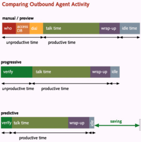 預(yù)測撥號 是一種用來在一個(gè)短的時(shí)段中對大量客戶進(jìn)行聯(lián)絡(luò)的一種先進(jìn)的步進(jìn)模式。使用預(yù)測撥號,坐席代表僅僅處理成功的呼叫。預(yù)測撥號實(shí)現(xiàn)了最高水平的效率。預(yù)測撥號使用精密復(fù)雜的技術(shù)預(yù)測沒有被應(yīng)答的呼叫的一個(gè)百分比和什么時(shí)候坐席代表將完成正在進(jìn)行著的呼叫。預(yù)測撥號將自動(dòng)撥電話號碼并對其中一些呼叫會失敗做好了準(zhǔn)備。使用預(yù)測撥號,坐席代表每小時(shí)的通話時(shí)間大約在40到45分鐘。