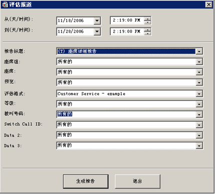 在質(zhì)量管理系統(tǒng)中,用戶可以通過評估報表生成器,定義客戶化的評估報表。用戶可以針對座席的表現(xiàn)生成文字和圖形化的報表。通過這些報表,可以了解需要改善和增強的座席培訓內(nèi)容。