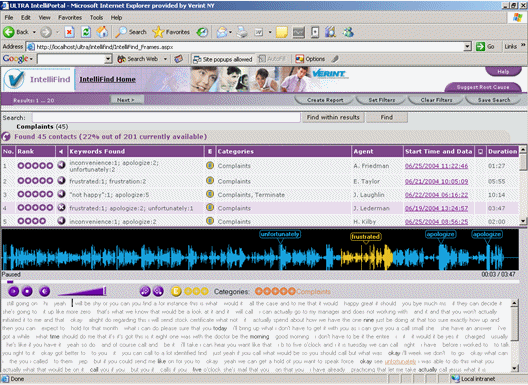 IntelliFind將客戶呼叫轉(zhuǎn)換成可搜索的數(shù)據(jù)庫形式,根據(jù)業(yè)務分類、短語和關鍵字鑒別呼叫。IntelliFind使用語音文本轉(zhuǎn)換技術轉(zhuǎn)換客戶呼叫錄音,幫助用戶理解客戶交互的情況。