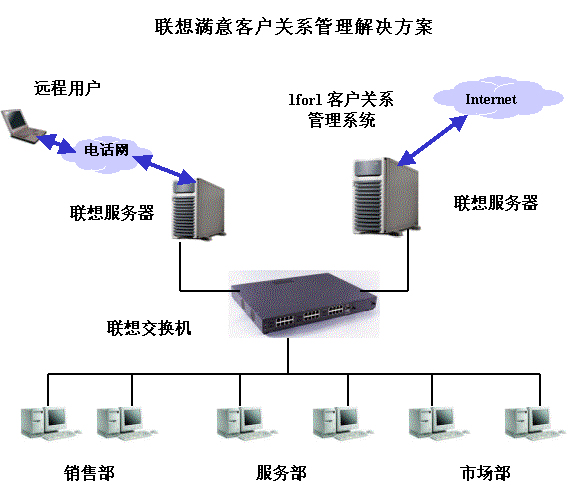 聯(lián)想IT 1for1客戶關(guān)系管理解決方案主要包括以下部分:服務(wù)器端的應(yīng)用軟件采用1for1客戶關(guān)系管理系統(tǒng);服務(wù)器端采用聯(lián)想萬(wàn)全工作組級(jí)和部門級(jí)服務(wù)器;客戶端推薦采用中高端商用電腦。