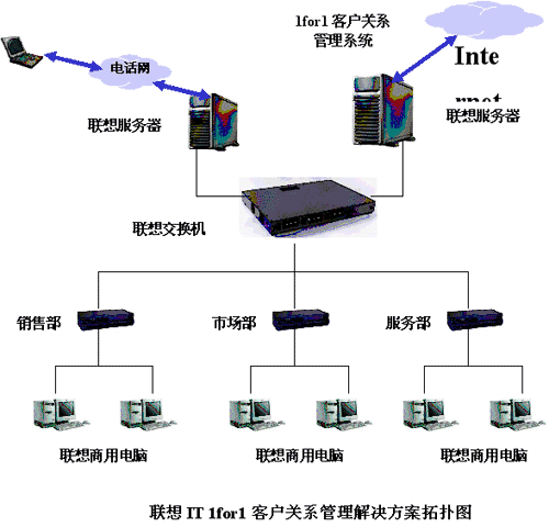 。。其實早在1998年,公司就開始了企業(yè)信息化管理的嘗試。公司建設(shè)了自己的局域網(wǎng),并開發(fā)出了專門的軟件系統(tǒng)。所有的客戶信息都要求錄入到這套系統(tǒng)中,銷售人員的工作記錄和銷售業(yè)績也要在系統(tǒng)中進(jìn)行登記。只是這套系統(tǒng)的基礎(chǔ)數(shù)據(jù)還是以Word、Excel文檔的形式分別存在,且中間的數(shù)據(jù)缺乏統(tǒng)一接口,無法動態(tài)地反映公司整體的運營情況,很快就無法適應(yīng)公司業(yè)務(wù)發(fā)展的需要。在這種情況下,公司決定引進(jìn)規(guī)范的客戶關(guān)系管理系統(tǒng)。經(jīng)過多方比較之后,公司選擇了聯(lián)想的IT 1for1客戶關(guān)系管理解決方案。
