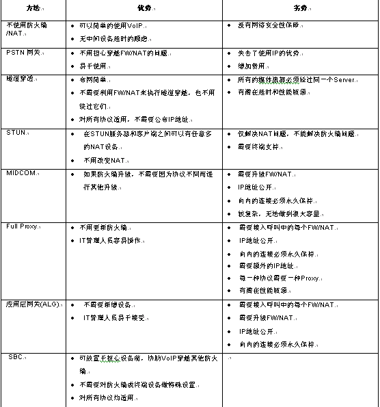 4 各種語音穿越防火墻技術(shù)的優(yōu)劣比較