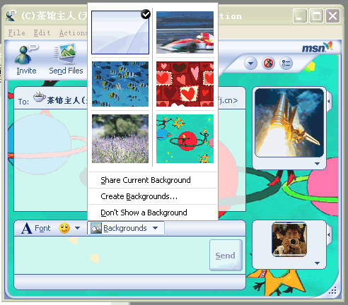在MSN Messenger 6.0,還可以自行修改聊天背景,可以隨意選擇圖片。