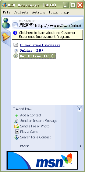 5月26日,微軟最新即時通訊軟件MSN Messenger的最新版本MSN Messenger Beta 6.0.0250被提前遭遇外泄,使得大家提前領(lǐng)略到了微軟最新的即時通訊軟件風(fēng)采。這也是微軟.net計劃中的一個重要組成部分,也讓我們看到了一些微軟“格林威治(Greenwich)”的影子!案窳滞(Greenwich)”――是微軟基于.net戰(zhàn)略的能夠?qū)崟r進行通信等的服務(wù)器軟件的開發(fā)代號。由于未對外正式發(fā)布,此次公開的是MSN