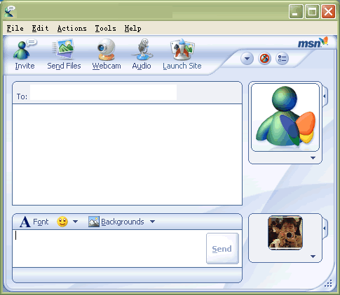 從聊天界面來看,兩者的類似更多。MSN Messenger 6.0在聊天界面比以前有了大幅改變,增加了聊天的兩者的頭像,并且可以方便的對自己的頭像進行修改。同時還可以輕松的修改聊天界面的背景。同時可以通過上面的圖標(biāo)按鈕邀請他人參與,發(fā)送文件,視頻聊天等。QQ