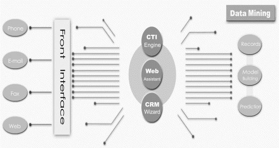 CTI.CRM共有4套功能強大的作業(yè)模塊組成,分別為【CTI Engine、Web Assistant、CRM Wizard 、Data Mining】,各模塊的特色功能羅列如下: