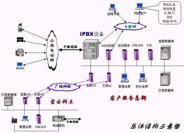 IVR)才能完成的諸如語音處理、按鍵識別、傳真收發(fā)等媒體處理能力。iPBX同時(shí)提供來自傳統(tǒng)TDM網(wǎng)絡(luò)和來自新的IP網(wǎng)絡(luò)的話務(wù)接入能力。