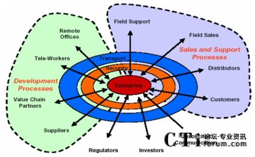 不同公司,生辰八字不同,發(fā)家史不同,決定了企業(yè)利益戰(zhàn)略點(diǎn)的不同,對(duì)統(tǒng)一通信的市場(chǎng)切入點(diǎn)和定位目標(biāo)就存在一些差異。軟件商采用以桌面軟件為基礎(chǔ),從上往下滲透的策略,設(shè)備商采用從基礎(chǔ)架構(gòu)出發(fā),從下往上突破的策略,但對(duì)統(tǒng)一通信的基本認(rèn)識(shí)可統(tǒng)歸為:以用戶為中心,實(shí)現(xiàn)跨時(shí)空的無(wú)限溝通。這里拋棄了網(wǎng)絡(luò)、終端、融合、平臺(tái)等技術(shù)層面的東西,而是完全從業(yè)務(wù)層面迎合了企業(yè)客戶的基本需求,企業(yè)聽(tīng)到了自然心動(dòng)!耙赂幌刃蘼贰,企業(yè)要發(fā)展,就必須先修好這條通信大道。從中,我們也可看出統(tǒng)一通信不是一種技術(shù),也不是一項(xiàng)應(yīng)用,而是一種需求、一種企業(yè)對(duì)網(wǎng)絡(luò)、通信技術(shù)成熟發(fā)展之后的需求滿足的期望。此外,通過(guò)對(duì)這些主要廠家的UC解決方案進(jìn)行分析,也可以發(fā)現(xiàn),無(wú)論大家的口號(hào)怎樣,PPT里的網(wǎng)絡(luò)架構(gòu)如何多變,卻一致地采用SIP協(xié)議進(jìn)行會(huì)話控制,用IP協(xié)議進(jìn)行數(shù)據(jù)傳輸,通過(guò)應(yīng)用服務(wù)器(或類(lèi)似網(wǎng)元)提供各種統(tǒng)一通信功能。