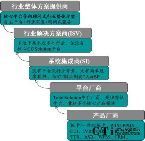第一,建設(shè)需求的變化。不管客戶通過自建還是托管甚至租賃方式擁有自己的呼叫中心(哪種方式在哪個(gè)階段更適合企業(yè),本次不討論,有機(jī)會(huì)再分享),10年前包括現(xiàn)在建設(shè)非營(yíng)利性呼叫中心大多數(shù)企業(yè)是處在滿足有沒有的底層需求階段(物質(zhì)需求階段),那個(gè)階段建設(shè)呼叫中心目標(biāo)更多是解決有沒有問題,并有一個(gè)明顯的時(shí)代烙。鹤钯F的就是最適合的,最貴的就是最好的,最貴的就是高枕無(wú)憂的……而那個(gè)時(shí)代國(guó)外廠商瘋狂“給力”國(guó)人,大發(fā)橫財(cái)。10年后的當(dāng)今大多數(shù)企業(yè)呼叫中心處在好不好的階段(精神需求階段)。有過一次甚至多次建置經(jīng)驗(yàn)的企業(yè),特別是國(guó)內(nèi)呼叫中心發(fā)展比較早及成熟的行業(yè),如:運(yùn)營(yíng)商、大金融(國(guó)有銀行、發(fā)展好的股份制商行與國(guó)有及商業(yè)保險(xiǎn)公司)、部分盈利型企業(yè)客服(呼入或呼出型電商、營(yíng)銷、外包客服等)大多數(shù)很理性,不再被沾沾自喜的國(guó)外廠商品牌、不再被廠商的某個(gè)技術(shù)、廠商多少國(guó)外成功案例等表象所迷惑。目前主流客戶需要的是有深度行業(yè)背景及積累,特別是行業(yè)理解力,并對(duì)客戶需求非常清晰的能提供顧問式行業(yè)整體解決方案的合作伙伴,總而言之,現(xiàn)在客戶需要的合作伙伴就是:一要深度行業(yè)背景及積累、二具備顧問式業(yè)務(wù)理解及交付能力、三能真正提供基于核心通信及業(yè)務(wù)平臺(tái)的顧問式整體解決方案能力。總之,當(dāng)今及未來(lái)一段時(shí)間內(nèi)中國(guó)CTI、呼叫中心等客戶需求變化就是全產(chǎn)業(yè)鏈的深度需求。對(duì)相關(guān)廠商或解決方案提供商而言,誰(shuí)能掌控并行之有效的為各行業(yè)客戶提供CTI產(chǎn)業(yè)鏈更多價(jià)值環(huán)節(jié),誰(shuí)就是客戶真正需要也是想要的伙伴,也是未來(lái)CTI業(yè)相關(guān)廠商或解決方案提供商發(fā)展之道。