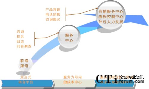 第二,業(yè)務(wù)應(yīng)用發(fā)展趨勢(shì)。早期呼叫中心大多數(shù)都是呼入型客戶服務(wù),處理基本的投訴、咨詢、回訪等常規(guī)業(yè)務(wù),可以說(shuō)更多的是一種擺設(shè),更像是形象工程。直接、間接效益都很難體現(xiàn),這就不難理解為什么在那個(gè)階段很多企業(yè)把呼叫中心建設(shè)理解為燒錢,不折不扣的成本中心。經(jīng)過這十多年的發(fā)展,包括技術(shù)的成熟等,呼叫中心可以說(shuō)業(yè)務(wù)應(yīng)用百花齊放,已經(jīng)成為營(yíng)銷服務(wù)中心、流程控制中心,而外包/租賃/托管等服務(wù)興起,特別是自動(dòng)或人工及呼入或呼出型營(yíng)銷服務(wù)的成熟是呼叫中心劃時(shí)代的變革,真正可以成為利潤(rùn)中心,并成為企業(yè)核心競(jìng)爭(zhēng)力之一。