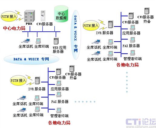整個系統(tǒng)的物理構(gòu)成包括:程控交換機(jī)、CTI服務(wù)器、IVR/FAX服務(wù)器、業(yè)務(wù)代表座席、管理工作站(計費、統(tǒng)計、系統(tǒng)管理、網(wǎng)絡(luò)管理)、電話錄音留言系統(tǒng)、數(shù)據(jù)庫服務(wù)器、應(yīng)用服務(wù)器、WWW服務(wù)器、網(wǎng)絡(luò)系統(tǒng)、網(wǎng)關(guān)等。
