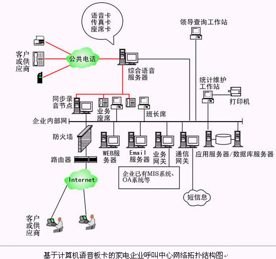 對(duì)于20個(gè)以下座席的中小型家電企業(yè)呼叫中心系統(tǒng),則建議使用基于計(jì)算機(jī)語(yǔ)音板卡的形式,可以減少家電企業(yè)投資,同時(shí)具有良好的系統(tǒng)性能;以確保合理的、較少的投入,獲取最佳的配置,滿(mǎn)足不同家電企業(yè)的需求。