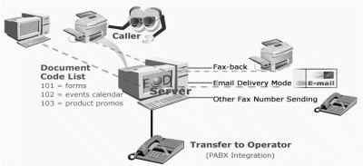 每一個文檔都有一個指定的FOD文檔代碼,顧客以此代碼請求文檔,FOD立即向顧客發(fā)送相應的E-mail或傳真。