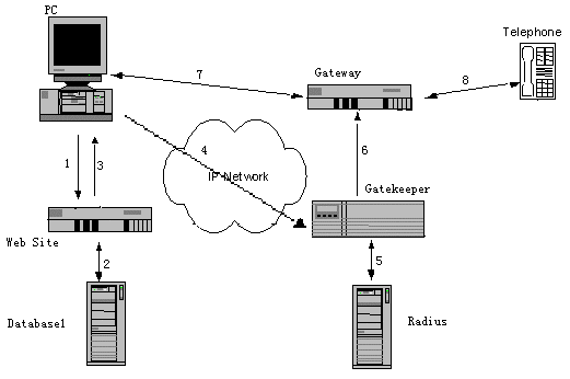 IP800服務(wù)做為先進(jìn)科技的具體應(yīng)用,以分組語音、語音編碼和壓縮、QoS等技術(shù)為核心,采用了國(guó)際標(biāo)準(zhǔn)H.323協(xié)議。系統(tǒng)由關(guān)守、網(wǎng)關(guān)、網(wǎng)管服務(wù)器、計(jì)帳服務(wù)器、檢測(cè)服務(wù)器、緩沖服務(wù)器、呼叫服務(wù)器、RS服務(wù)器等模塊組成,參考下圖: