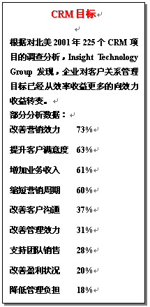3.對于客戶關(guān)系管理工作的總體目標(biāo)有明確的設(shè)定,并可據(jù)此逐步分解到效益收益、客戶管理、業(yè)務(wù)運(yùn)營、組織人員和信息技術(shù)等具體客戶關(guān)系管理目標(biāo);