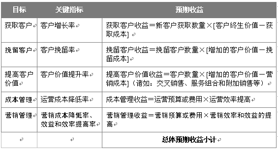 "效益目標(biāo)" 這一戰(zhàn)略考慮是設(shè)定企業(yè)客戶關(guān)系管理戰(zhàn)略中的針對細(xì)分客戶的收益目標(biāo),與之相關(guān)聯(lián)的戰(zhàn)略重點(diǎn)是最大化針對細(xì)分客戶的客戶價值。這一部分將對以后工作中的客戶關(guān)系管理客戶收益提供方向和評估方法。